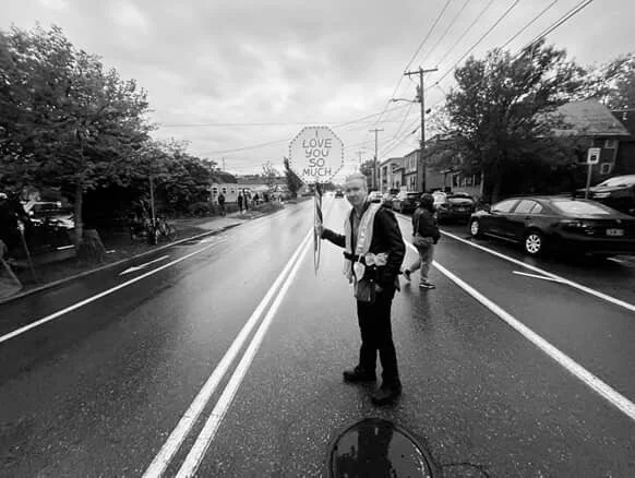 Ahead of the 2025 event, organizers asked if I could use my crossing guard skills to help guide people across a busy street separating different events. I was out of town for the festical, but I had already been thinking about alternative stop sign messages I wished I could flash drivers I held up at my usual intersection. So I made a couple of these weirdo stop signs for other Plex volunteers to use at the event.